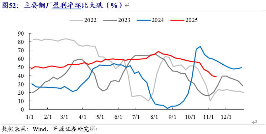 钢厂盈利率大跌。截至11月14日,国内主要钢厂盈利率39%,周环比下跌1pct。