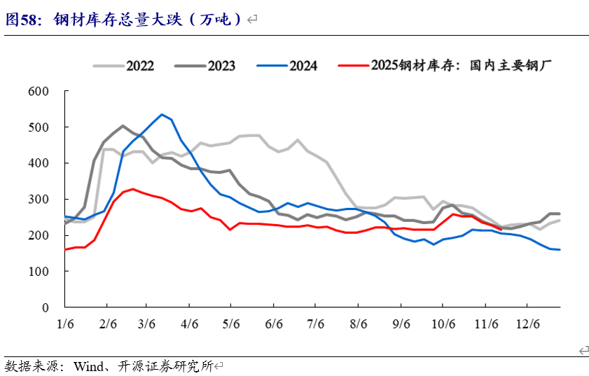 钢材库存总量大跌。截至11月14日,国内主要钢厂钢铁库存216万吨,环比下跌12万吨,跌幅5.43%。
