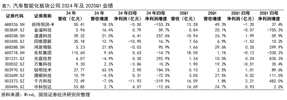 汽车智能化板块。随着政策推动及 AI 的发展,无人驾驶、座舱智能化有望加速迭代:1)2024 年,工信部等五部门共同发布《关于开展智能网联汽车“车路云一体化”应用试点工作的通知》,鼓励在限定区域内开展智慧公交、智慧乘用车等多场景应用试点,促进了自动驾驶技术的研发与测试,同时加速了智能驾驶的商业化进程;2)2024 年众多车企将大模型融入座舱系统,语音交互、场景化服务更趋智能,市场对座舱升级需求增长。当前板块内公司为巩固技术壁垒,持续高投入研发,利润端受研发成本拖累。长期来看,汽车智能化板块在技术突破与需求释放下,有望在2025 年快速发展。