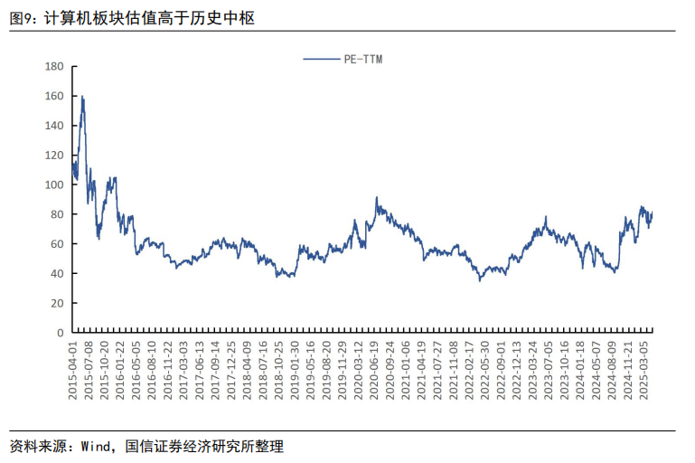 计算机板块估值高于历史中枢