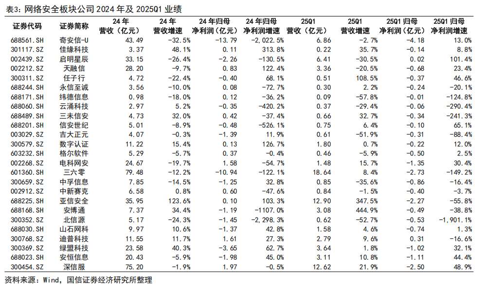 网络安全板块。2024 年板块公司业绩承压,主要因为:1)宏观经济影响延续,政府及企业在网络安全领域预算投入仍较谨慎,需求端释放不足,部分公司业务拓展受阻;2)2024 年企业盈利能力承压,导致在网络安全领域的投资有一定程度的缩减和延后。尽管板块短期承压,网络安全领域技术创新与新业务探索持续。2024 年,AI 应用的快速普及给网络安全带来了历史性的机遇与挑战,网络安全发展仍是数字化建设的重点。