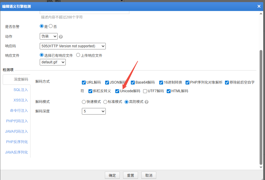 6081 & 6073版本:在语义分析引擎中开启 Unicode 解码后即可实现同等防护能力。