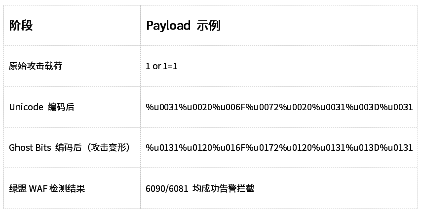 无论是标准 Unicode 编码还是经过 Ghost Bits 变形的 Payload,绿盟WAF均能在解码阶段完成语义还原,让隐藏的“幽灵”在到达业务系统前现形。