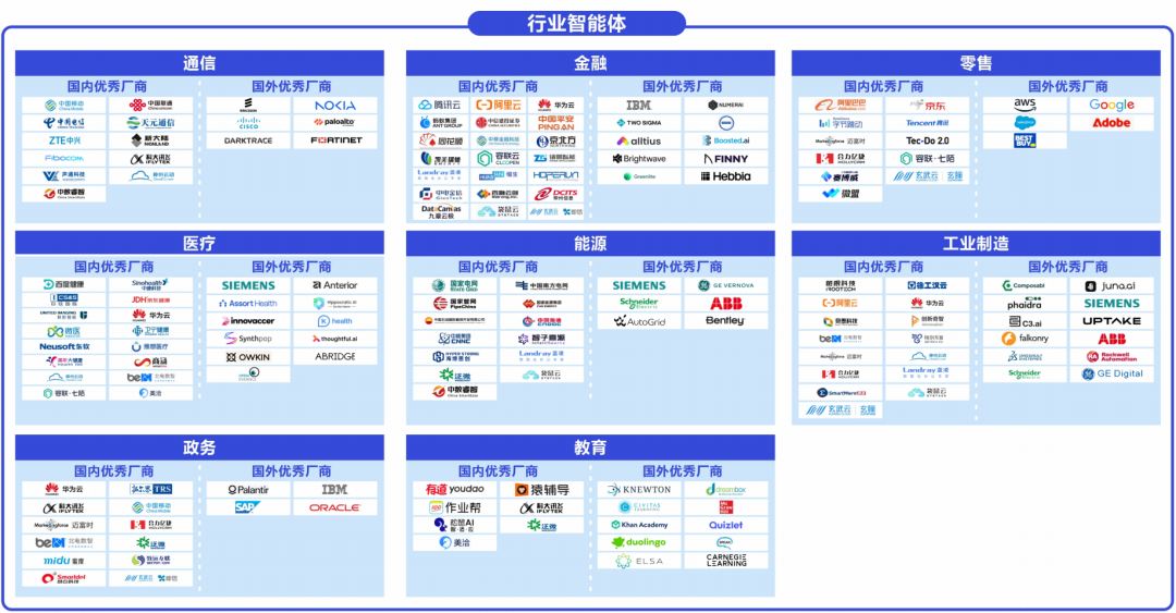 国内主要可以分为AI芯片、服务器集成厂商、算法框架、大模型厂商、数据服务商以及云计算平台等