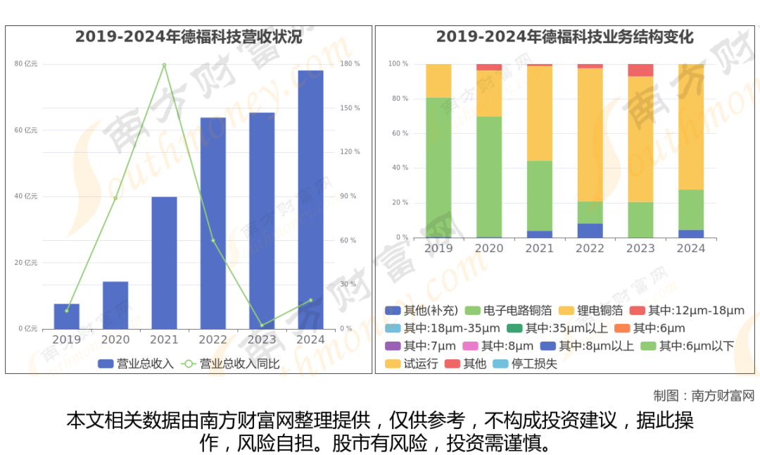 根据南方财富网产业链数据显示,公司产品线涵盖电子电路铜箔、锂电铜箔等产品;产品广泛应用于覆铜板、印制电路板、锂电池等领域。