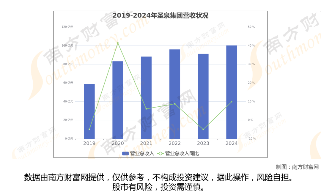 (如上图)2024年圣泉集团公司营业总收入100.2亿,同比增长9.87%,近五年复合增长率为4.76%。