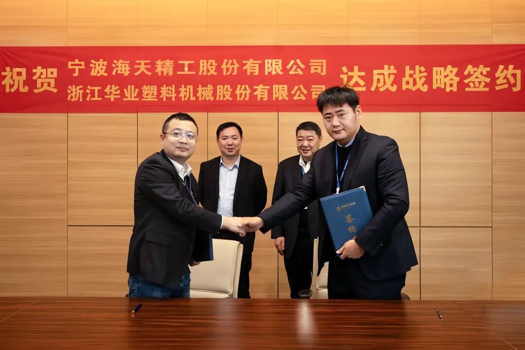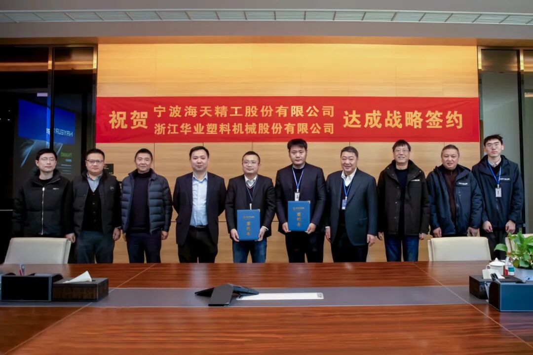 1月14日,海天精工与浙江华业塑料机械有限公司(以下简称“华业机械”)在舟山正式签署战略合作协议,标志着双方将建立长期稳定的战略合作伙伴关系,携手开启资源共享、优势互补的发展新征程。