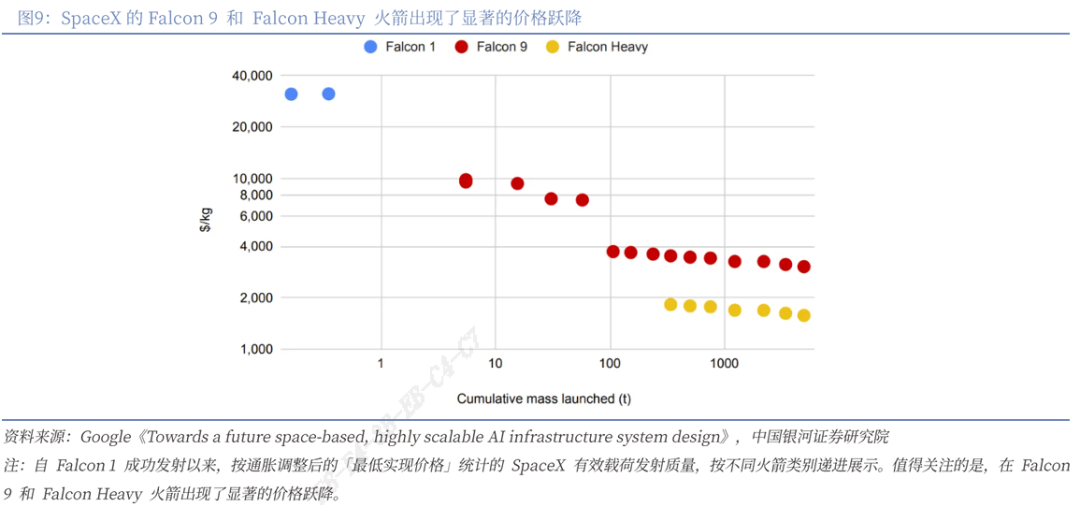 尽管高发射成本历来是制约天基系统规模化的重要因素,谷歌基于历史与预测数据分析指出,至2030年代中期,发射价格有望降至200美元/公斤以下。在此价格水平下,以“千瓦/年”为单位核算,天基数据中心的发射与运营成本或与同规模地面数据中心的能源成本相当。初步分析认为,天基机器学习计算在基础物理与经济层面均具备可行性,但仍需攻克热管理、高带宽地对天通信及在轨系统可靠性等重大工程挑战。