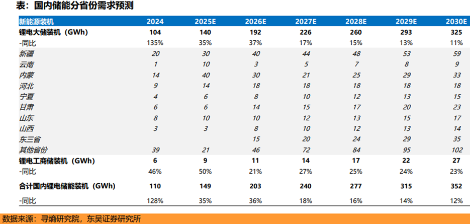 分省份看,25-26年新疆和内蒙是装机主力,贡献70GWh,贡献40-50%装机。同时,已出容量电价补充的省份,如河北、甘肃、山东等平均贡献10-20Gwh;另外青海、东三省、浙江、江苏等地,预计26年将发力,分别有10GWh 的空间。