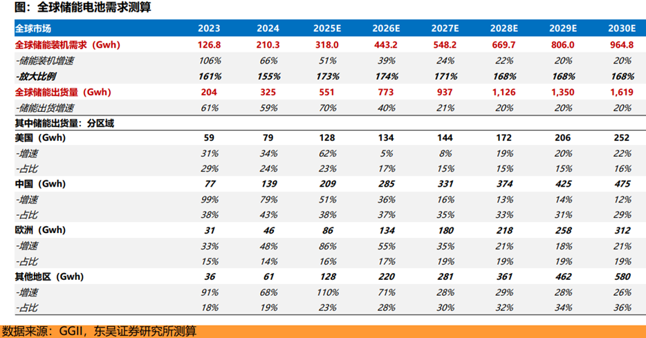 分区域看,国内上修,欧洲和新兴市场持续高增,美国25年抢装明显。国内预计25年51%增长,26年维持36%增长。预计25年欧洲储能出货86%增长,其他地区110%增长;美国25年抢装明显,26-27年obbb法案生效,预计增速放缓。