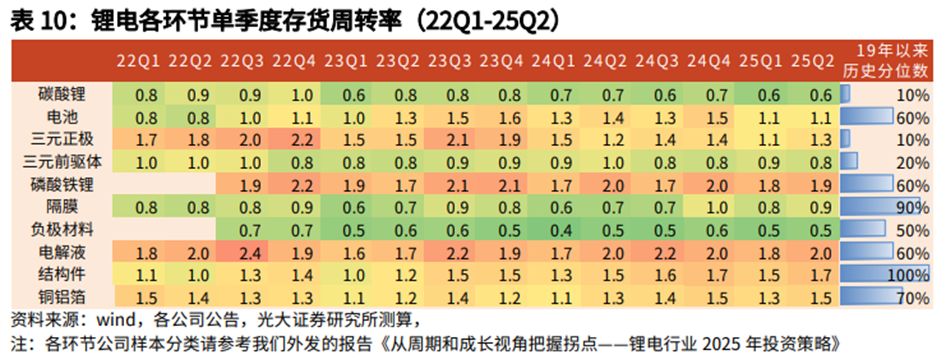 稳健需求支持行业完成高周转去库。行业存货一直维持高周转,锂电行业下游动力、储能等市场提供了稳健的需求,支撑边补库边保持效率的健康去库节奏,因此,行业的核心矛盾不在于需求萎靡,而在于供需关系。