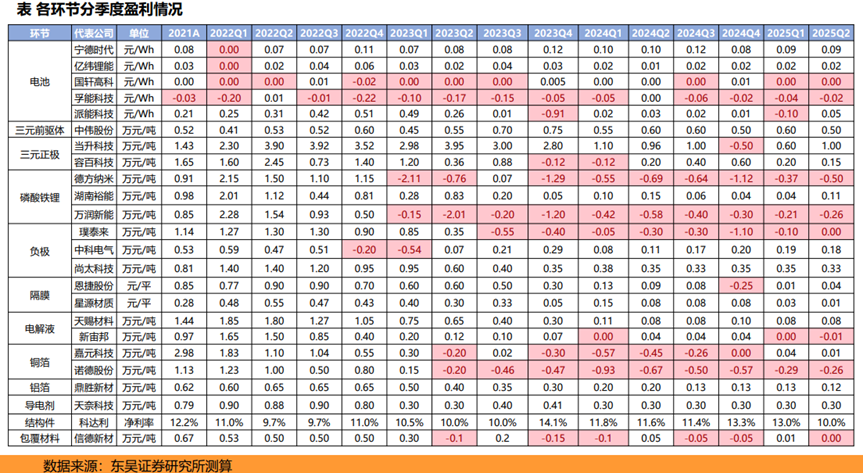 当前电池、结构件龙头达盈利合理水平,二线厂商微利,25年预计价格稳定,盈利有望维持。
