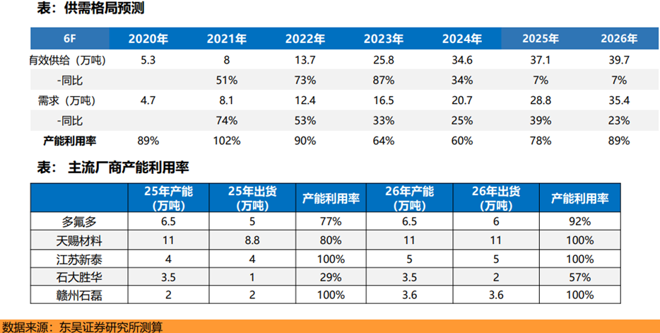 (3)供需预测:6F主流厂商公司满产,行业供给实现紧平衡