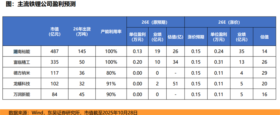 高端产品供不应求,加工费预计进一步上涨。25年头部电池厂2.6压实铁锂渗透率快速提升,且当前仅富临和裕能可供货,高端产品供不应求,Q1涨价落地,预计26年高端产品供需依然紧张,价格有望二次上涨,龙头厂商通过高端产品放量,预计盈利可显著改善。
