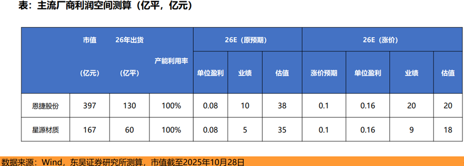 负极龙头厂商满产满销,小客户涨价已逐步落地,预计26年有望实现大客户价格上涨。当前头部厂商产能满产满销,且小客户涨价落地10%,Q4逐步体现,大客户价格谈价中,有望26年落地。