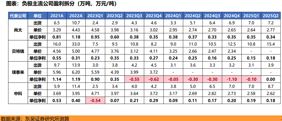 (4)盈利:负极行业盈利底部确认,迎来修复拐点