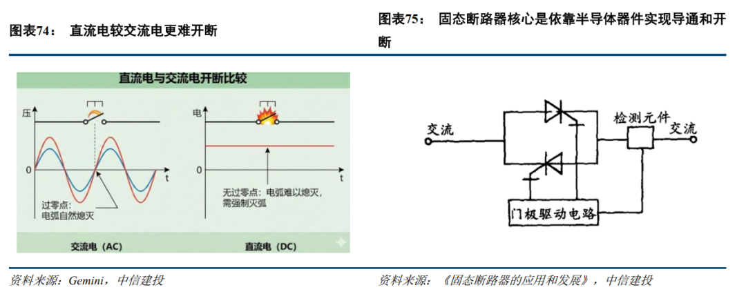 数据中心广泛应用HVDC等直流供电技术后,因直流电无过零点,存在开断难度较大的问题,若采用传统机械开关,将导致拉弧问题,电弧难以熄灭,而交流电则可以在电流过零点开断从而自然灭弧。