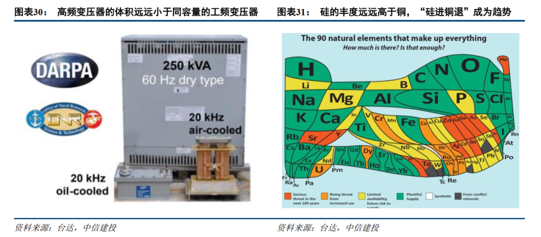 由于硅在地壳内的元素丰度远远高于铜,通过使用高频变压器代替工频变压器可以大大减少铜的使用量,从而规避近年来逐步高涨的铜价,也能部分解决目前变压器产能不足的问题。