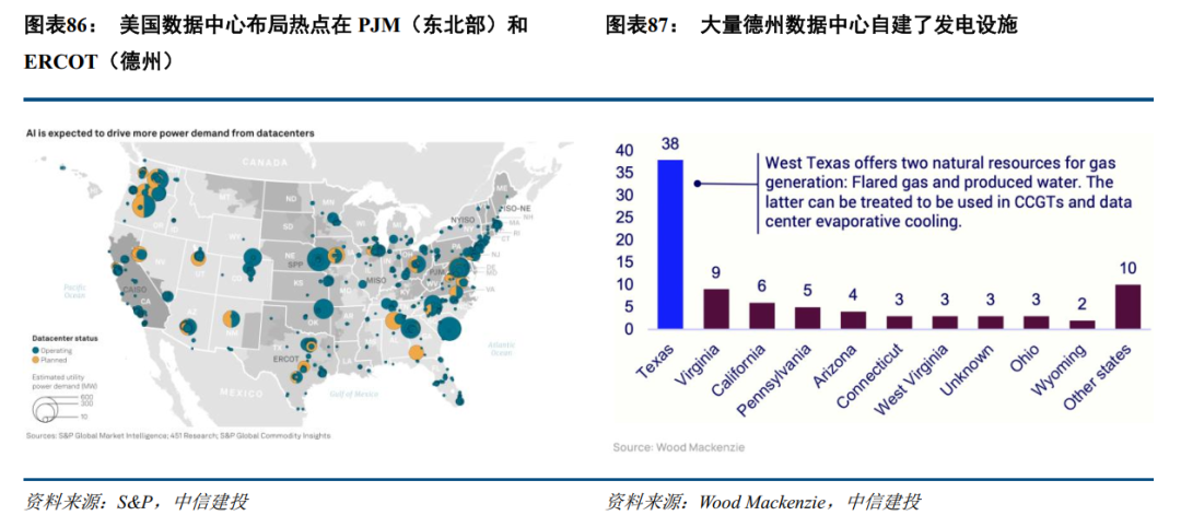 根据Wood Mackenzie的US data center pipeline Q3统计,截至10月中旬,美国数据中心项目规划装机容量达到245GW。这些项目以及超大规模数据中心签署了可再生能源协议,大多集中在得克萨斯州。2025年以来,全美超过四分之一的项目规划装机容量都集中于德州,当地的储备项目容量从第一季度的35GW,累计至第三季度已实现达到67GW,几乎翻番。同时,根据PJM(美东/中大西洋)发布的2025年长期负荷预测,到2030年夏季峰值负荷将增加约 32 GW,其中几乎全部增量都来自数据中心。ERCOT(德州)则显示大型负荷并网队列在一年内翻了4倍,达到约226GW,其中73%-77%为数据中心,尽管其中可能有大量“投机性”申请,存在泡沫可能。