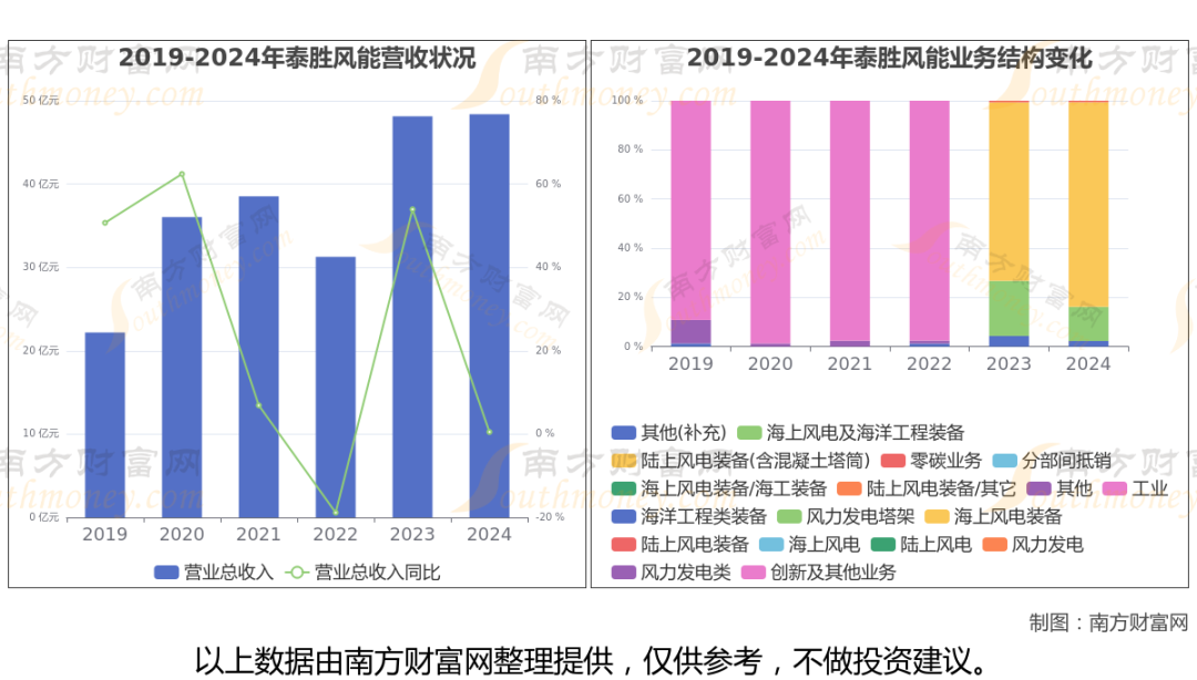 泰胜风能于2010年10月19日在深圳证券交易所上市,公司主营业务为风力发电设备、辅件、零件及各类海洋工程设备的生产、销售业务。