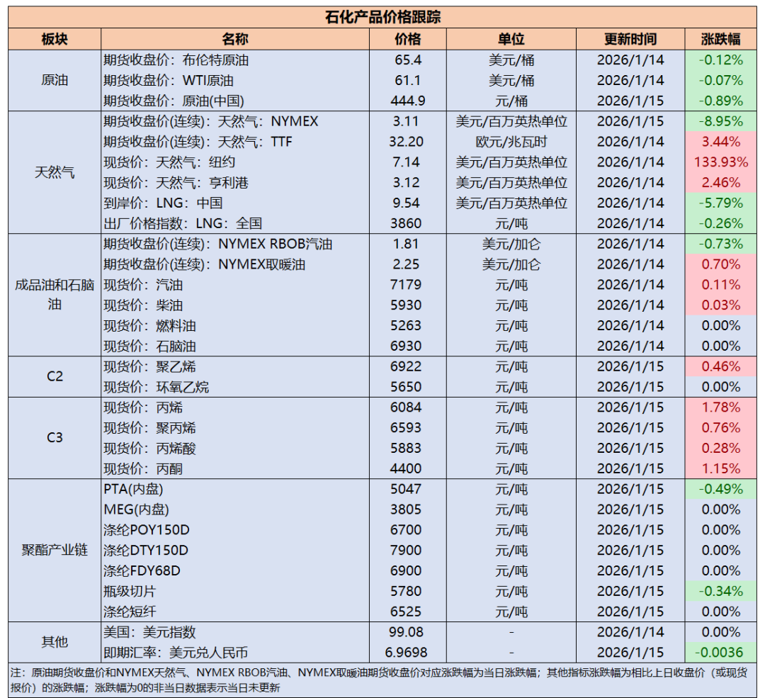 石化产品价格跟踪