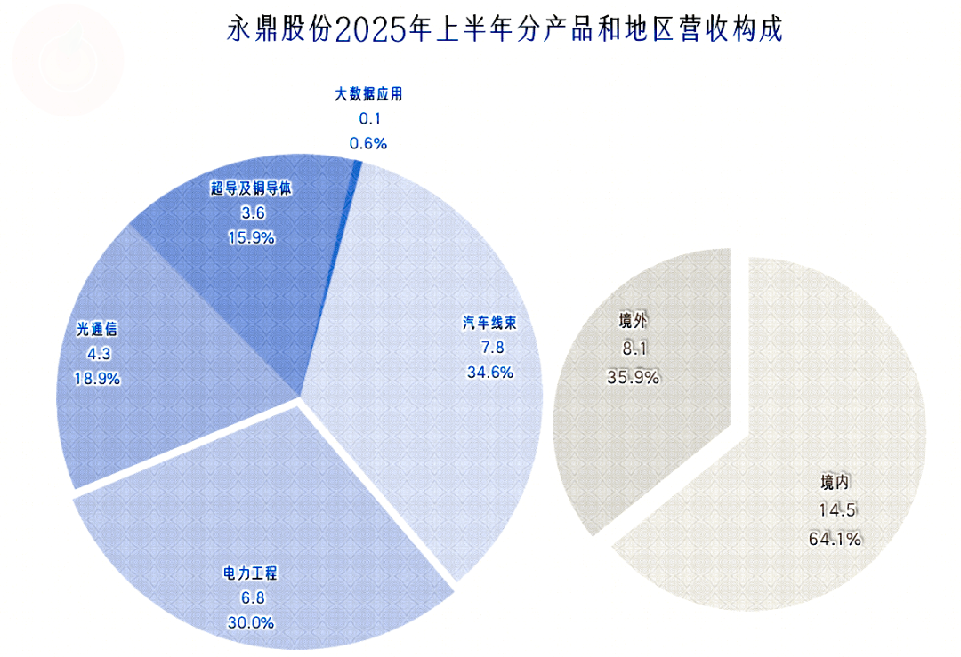 “汽车线束”和“电力工程”是占比超三成的两大核心业务;“光通信”和“超导及铜导体”也是重要业务,还有少量的“大数据应用”业务。境外市场占比超过1/3,国际市场的重要性较高。