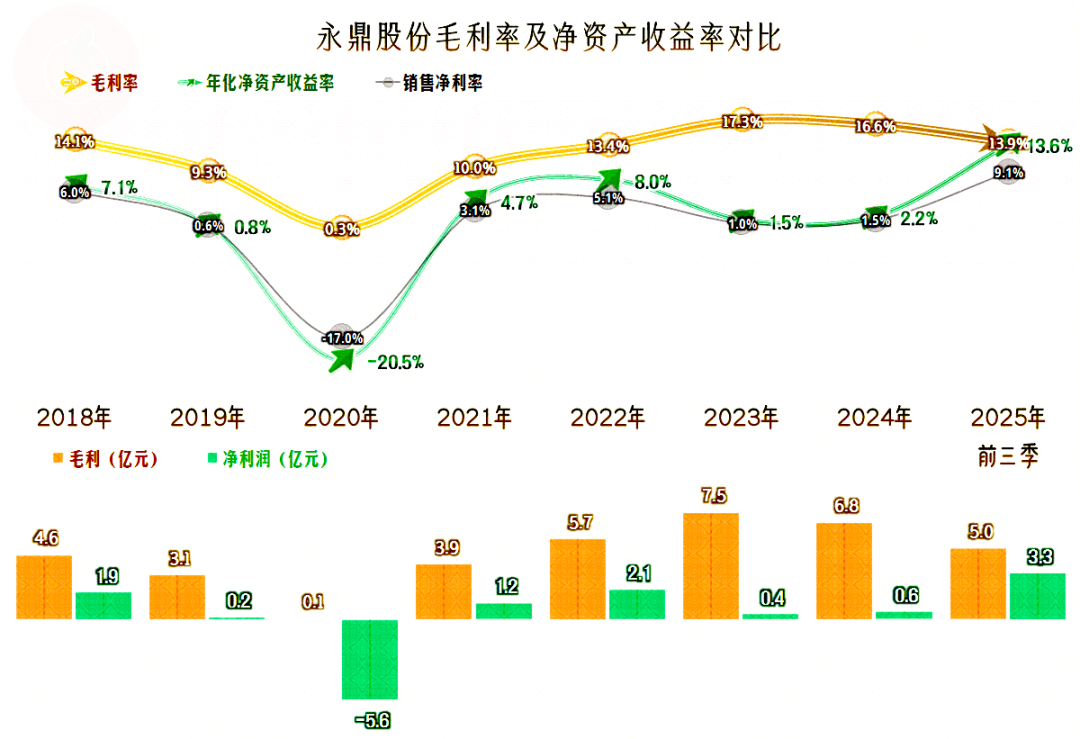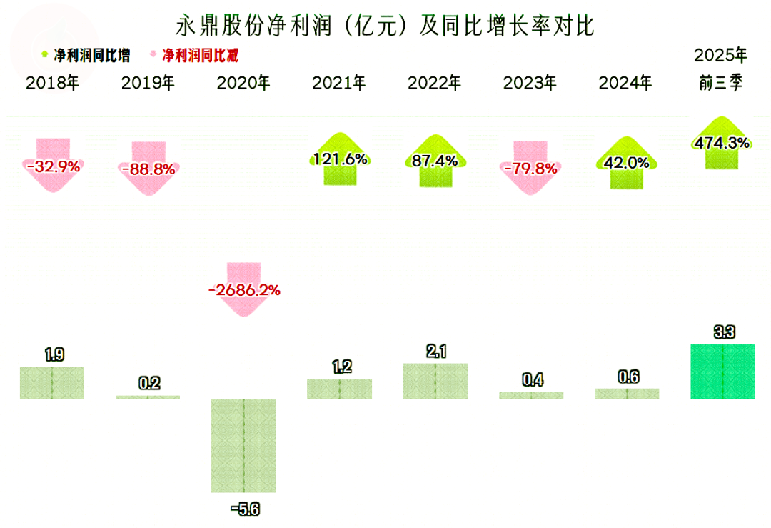 2025年前三季度的净利润创下了新高不说,还超过了以前任何全年的水平,业绩表现创下了新纪录。在前几年,永鼎股份的净利润表现并不稳定,仅有三年的水平还不错,大多数的年份盈利都不高,还在2020年出现过大额亏损,我们就来找一找原因吧。