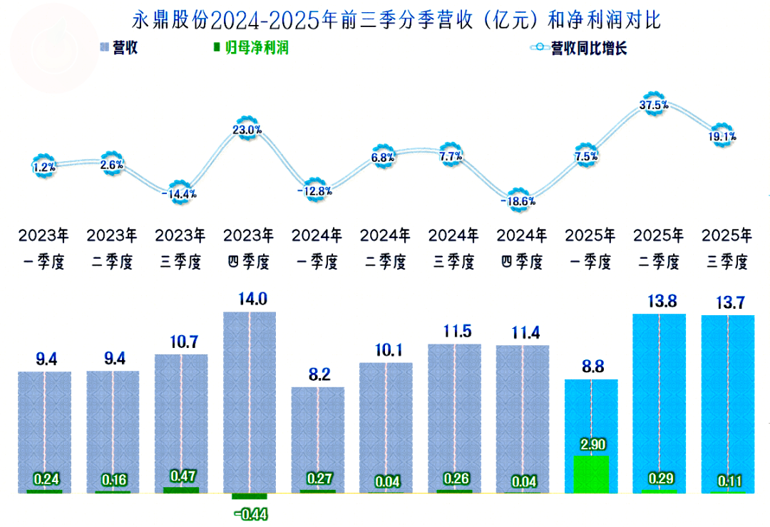 2025年前三季度,永鼎股份的营收同比增长超两成,创下了前三季度的新高。近几年的营收呈平台状增长,2021年以来是40亿元的平台,估计2025年仍难脱离这一平台,但可能会明显高于其他四年。