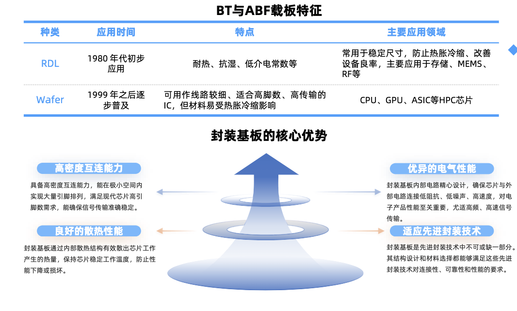 封装基板:先进封装的关键材料,为芯片提供电连接、保护支撑、散热等功效。ABF基板适合高密度布线和高传输速率的集成电路,用于高性能计算芯片封装,国内兴森科技、深南电路等厂商在该领域加速布局。玻璃基板有望成为下一代先进封装基板的关键材料,沃格光电是全球少数同时掌握TGV技术的厂家之一。