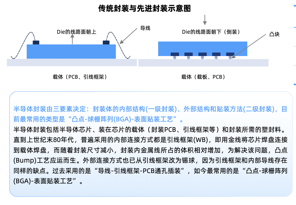 传统封装由于自身局限难以满足算力芯片的高标准,在此背景下先进封装技术应运而生。