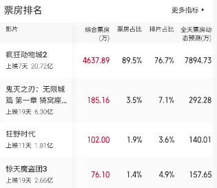 76.7%的排片占比、89.3%的票房占比。显然,这一组数据更为惊艳。