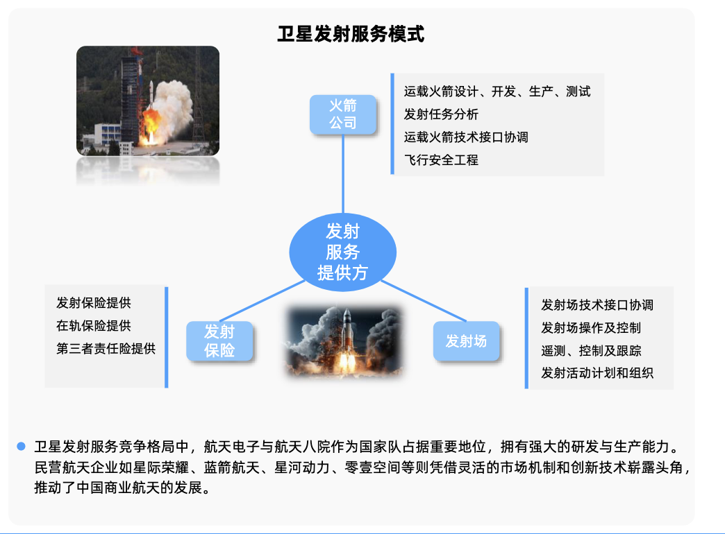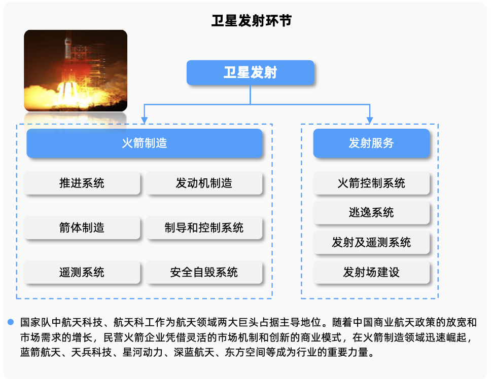 中游环节聚焦括火箭总体设计、分系统研制和总装集成。