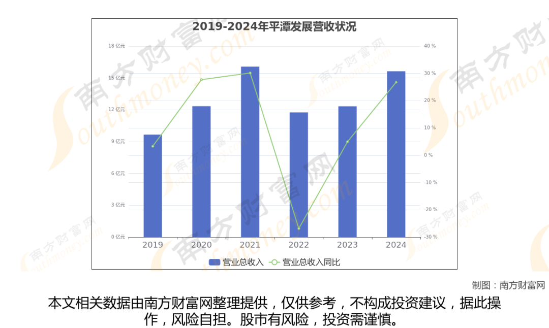 平潭发展2024年数据显示(如上图),公司2024年营业收入15.63亿,同比增长26.78%,近五年复合年增长率6.09%。