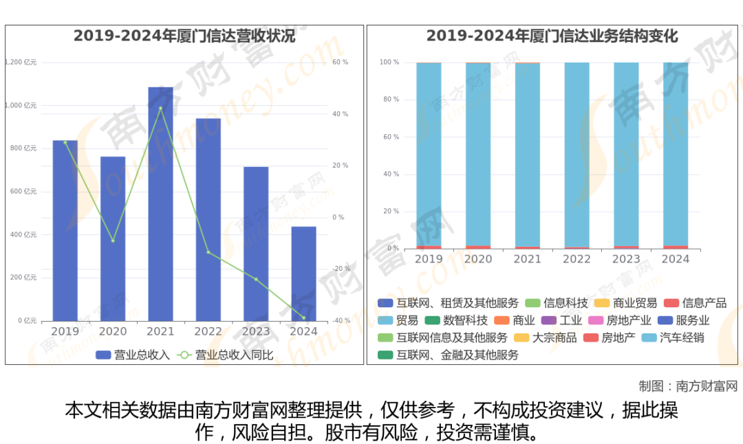 厦门信达于1997年2月26日在深圳证券交易所上市,公司主营业务为汽车经销业务、供应链业务、物联网业务及光电业务。