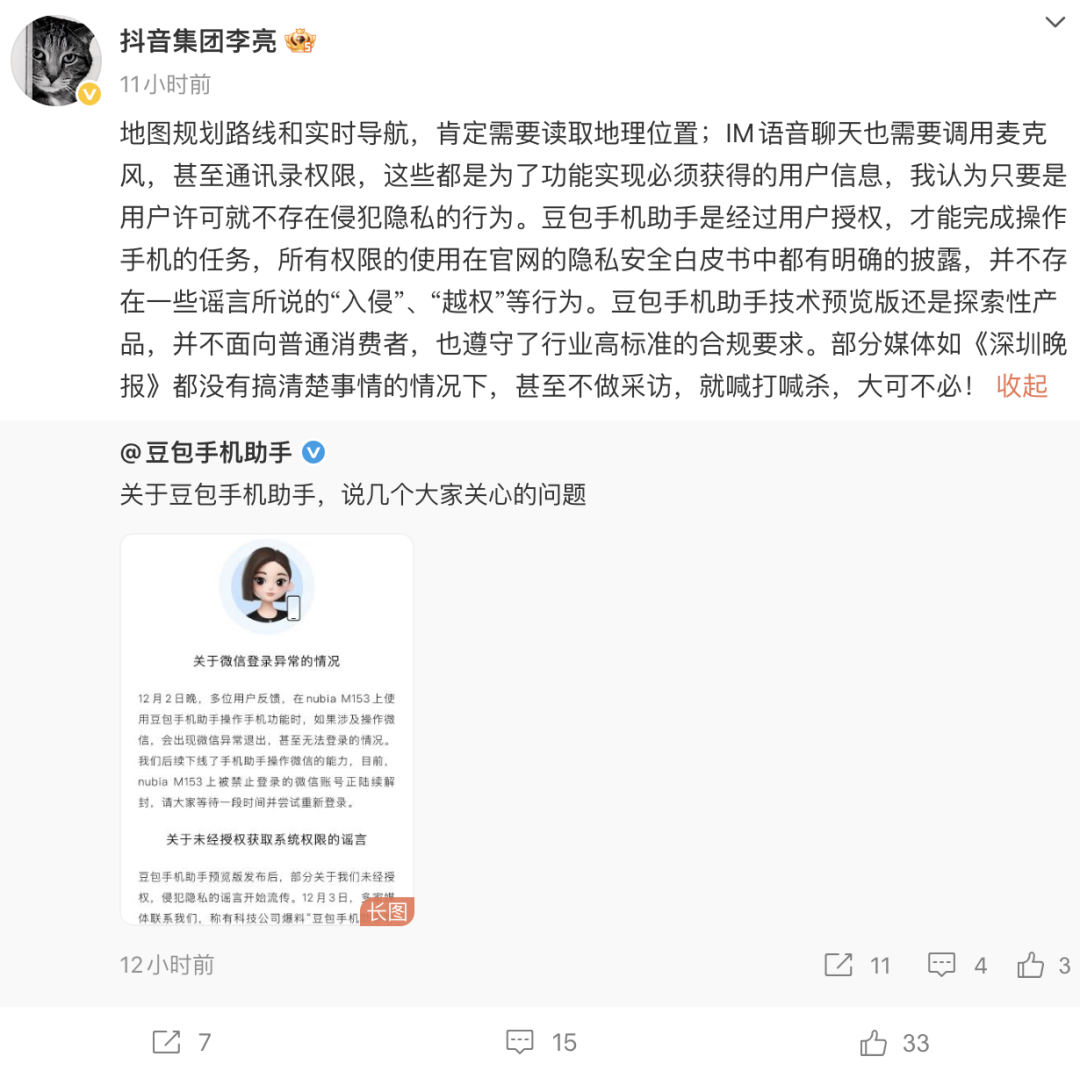 对此,豆包手机助手官方做出了回应: