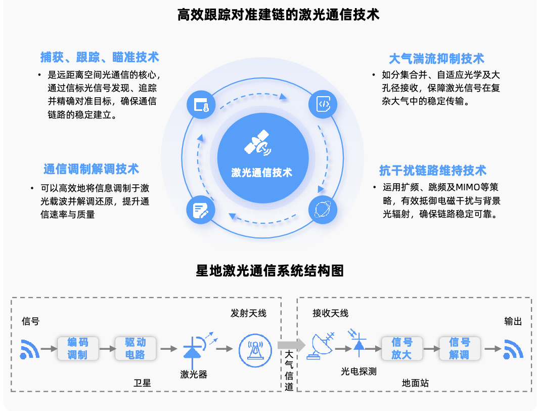 星间激光链路:构建卫星间高速链路(如低轨星座组网)的最佳方式,相当于“太空光缆”,能够降低对地面站依赖。