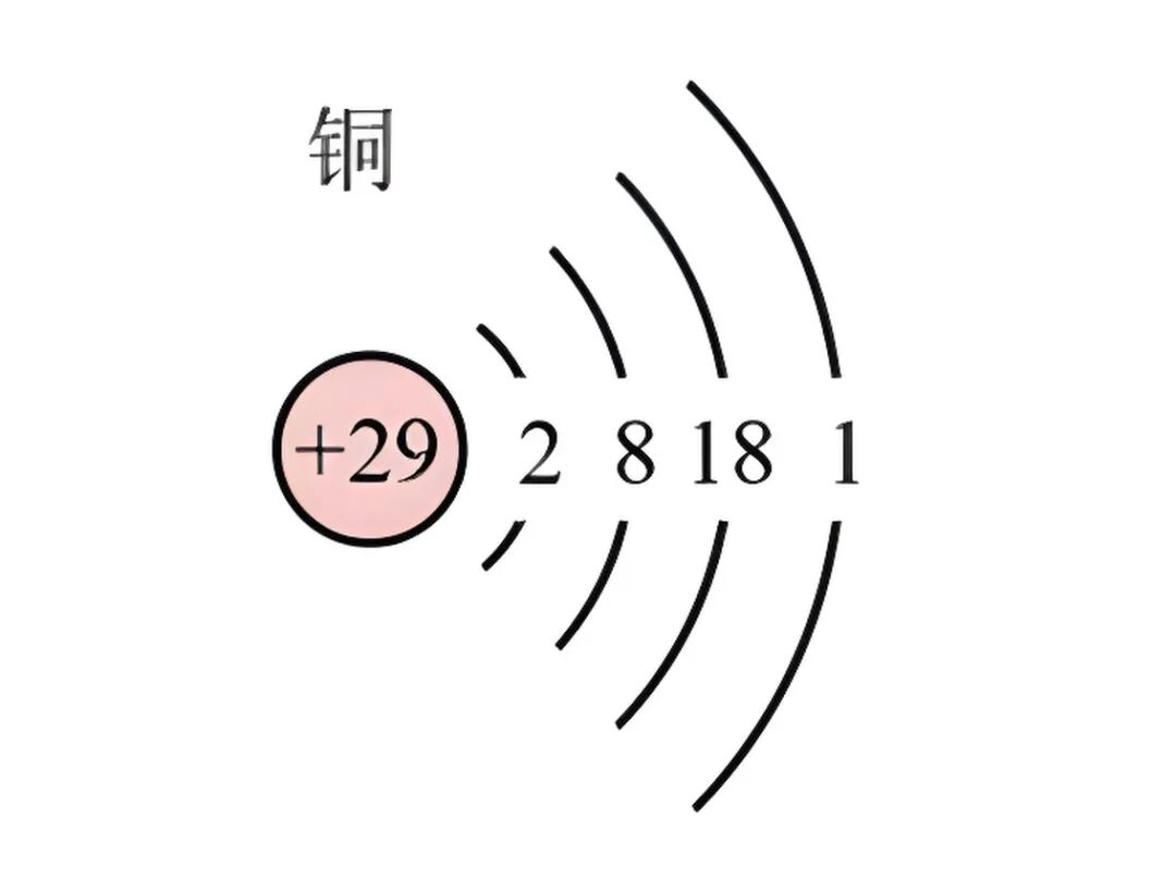 铜原子序数29,位于元素周期表中第4周期ⅠB族;铜元素是一种的变价金属元素( 1、 2)。原子结构示意图: