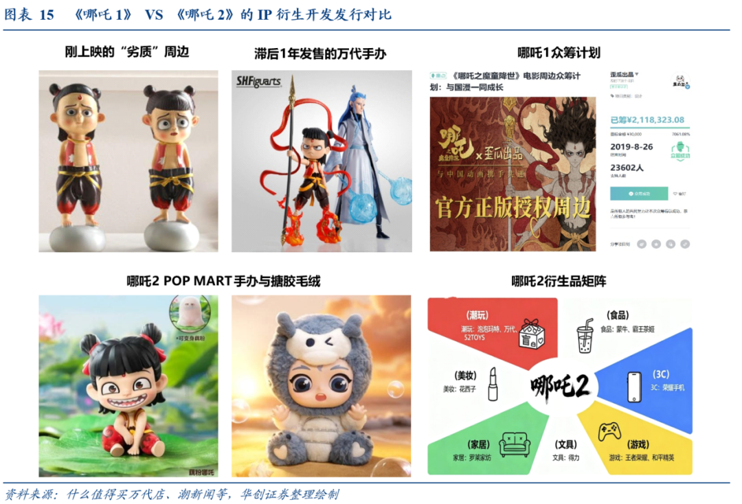 以《哪吒1》与《哪吒2》的IP衍生品产业开发为例,我们跟踪观察到中国IP衍生品工业化体系日趋成熟。
