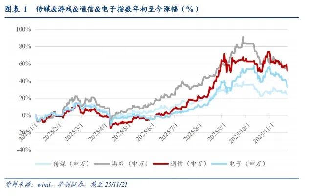 (1)叙事纬度:AI应用及IP产业是确定性的成长&高景气度方向,25年AI应用及IP产业链明显滞涨(对比AI硬件通信&电子方向),产业内进展较快,看好后续拔估值机会(复盘过去互联网 行情,应用是弹性更大的方向)