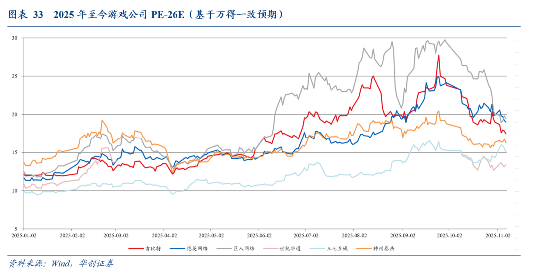 重点A股游戏公司估值已经回到25年15-20x合理区间,具备性价比,看好26年需求端驱动EPS超预期带动PE双击。