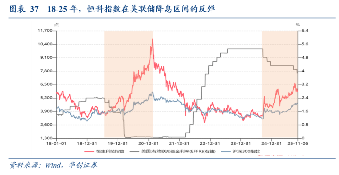 短期内市场对美联储降息节奏与幅度的博弈仍存反复,或导致美元流动性预期波动,压制全球风险资产的估值修复空间。然而,我们认为港股市场对此具有不对称的潜在上行收益。核心逻辑在于港币的联系汇率制度。一旦美联储启动宽松周期,香港金管局将相应调整基准利率,最直接的影响是降低本地融资成本(HIBOR),或提振港股市场的整体流动性与风险偏好。