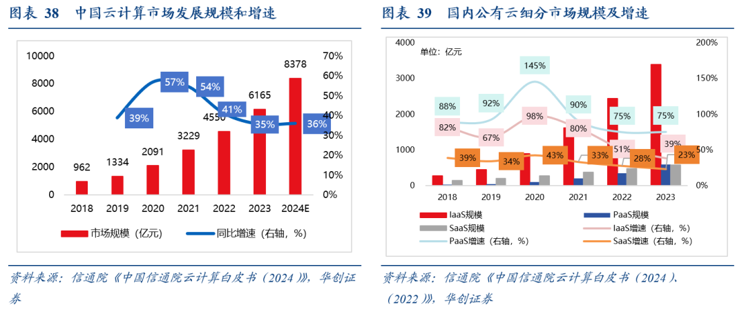 值得关注的是,过去在国内云计算市场份额占比较小的PaaS,如今正在缩小与IaaS的规模差距,而PaaS正是更体现云厂商软件技术价值的部分。在AI浪潮的推动下,企业也将更倾向于采用IaaS PaaS一体化的解决方案,从而释放更多精力聚焦在应用开发。我们认为以DeepSeek为代表的优秀开源大模型接入云厂商,会进一步催生企业对云全栈能力的需求。