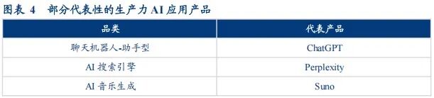 生产力方向:以AI能力来完成或辅助完成工作,商业化上除了直接从C端盈利,也探索B端变现(例如通过云服务)。涵盖范围从最“简单朴素”的助手型聊天机器人(例如ChatGPT),到各类AIGC(生文、生图、生视频、生音乐、生语音、生PPT等)工具、AI Agent,以及广告算法效率的提升等更泛的场景,产品探索进度较快。我们认为在生产力方向,在保证准确性的前提下,能够清晰算出AI降本增效的ROI时,用户/企业就会倾向于选择AI替换。B端定制化需求为主,更理智计算ROI;C端海外OpenAI商业化进展相较更快,国内厂商走免费模式,用户付费习惯或尚未养成。