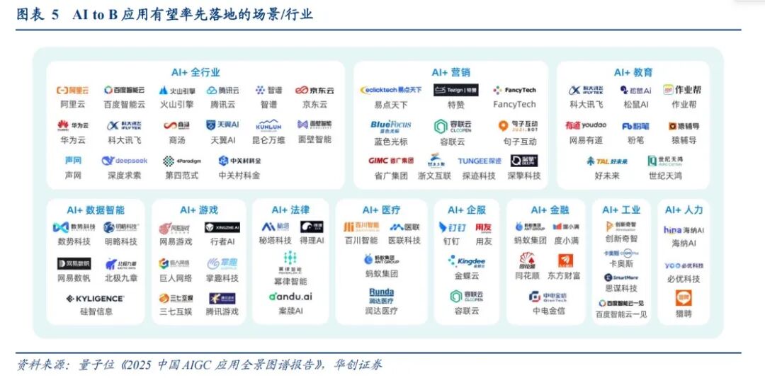 1、AI to B:不同场景&行业,AI渗透速度有所差异,看好营销、教育等场景