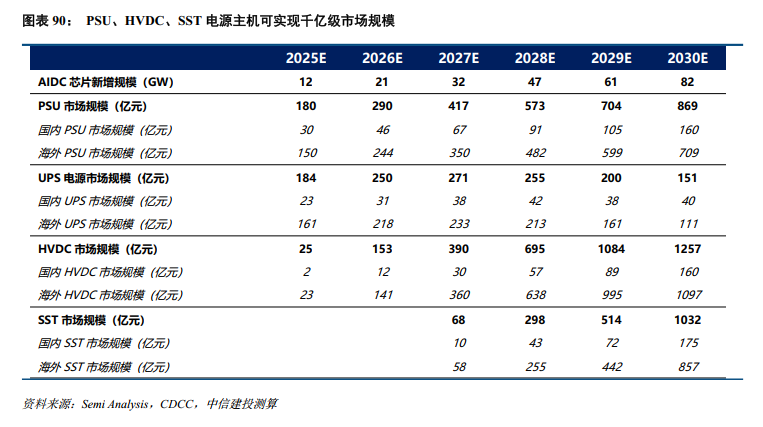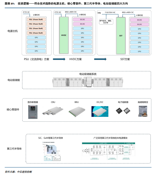 (1)价值量最为集中、功率密度不断迭代升级的电源主机环节,即PSU、HVDC、SST等。