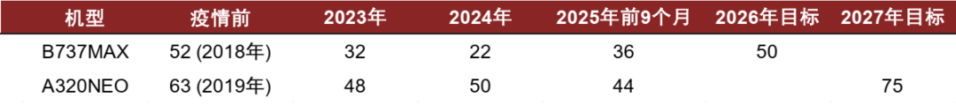 图表1:波音、空客主力机型的产能均未恢复(单位:架/月)