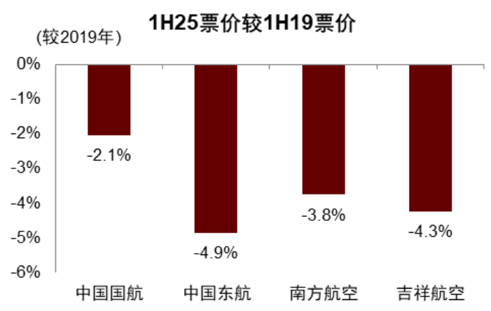 图表15:1H25主要航司票价明显低于1H19