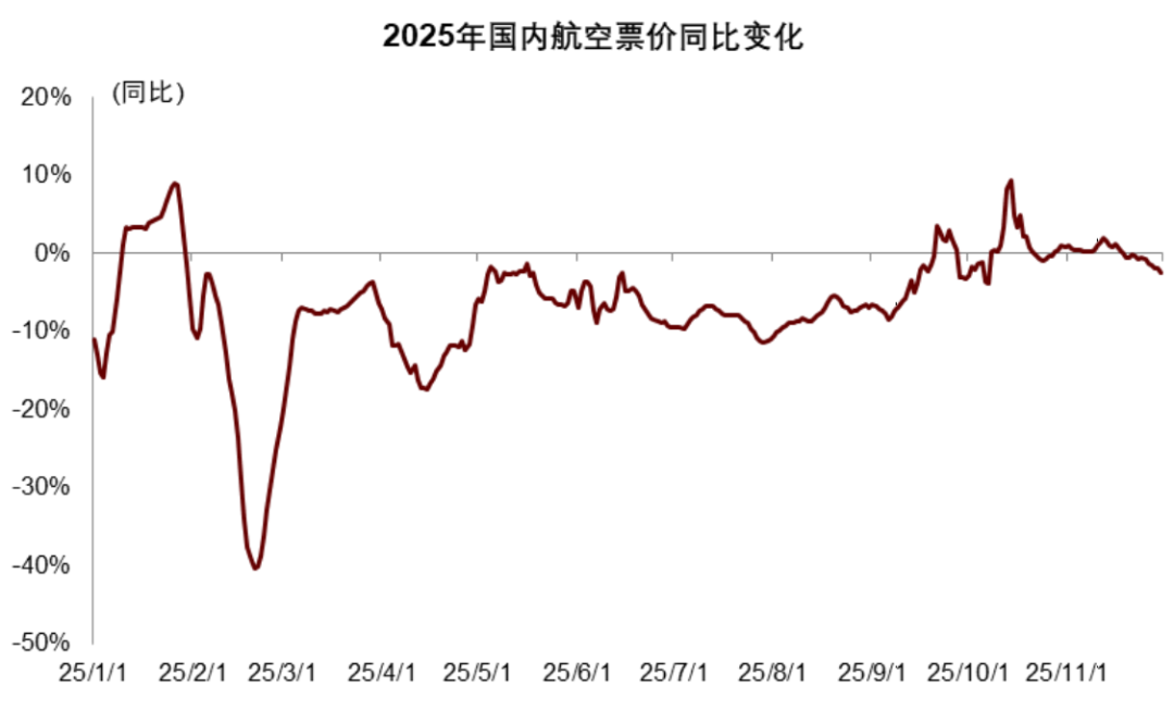 图表17:2025年国内航空票价同比下降7%,淡季表现优于旺季