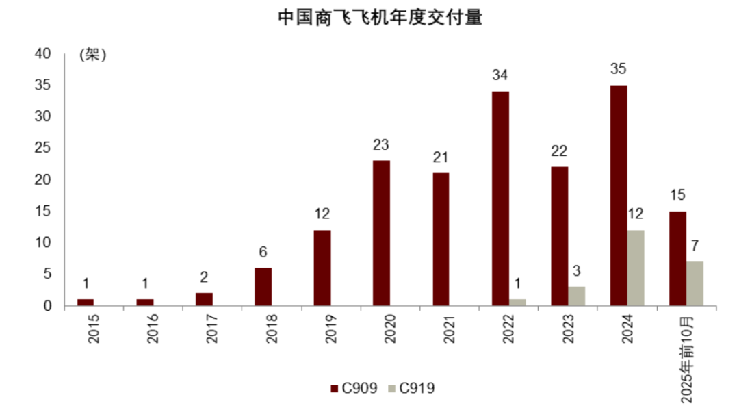图表2:我们预计2025年中国商飞飞机交付量同比明显下滑