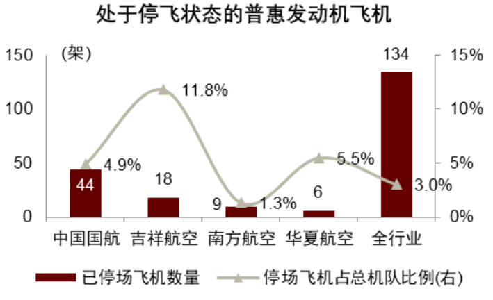 飞机发动机维修周期缩短。发动机问题是导致本轮航空行业供给降速的重要原因,如果发动机维修速度加快、周期缩短,行业可用飞机数量将提升、飞机利用率提高,供给增加,对行业票价形成压力。